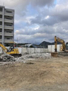 福岡市南区若久で進めている解体工事は、建物の主要構造部分の撤去が完了し、大きな節目となる工程に入りました。現場では、建物の高さや形状がほぼ無くなり、全体が見通せる状態になってきており、工事の進捗を外からでも確認できる段階 […]